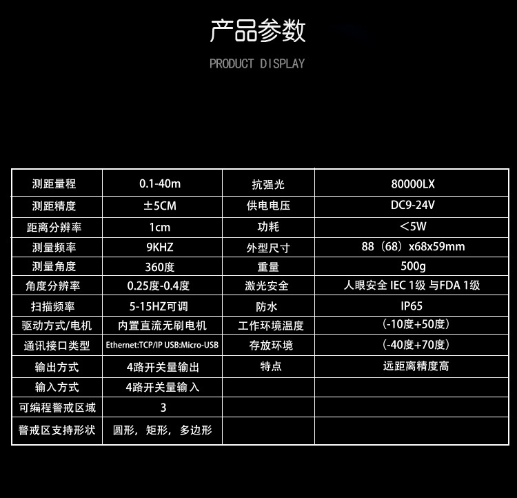 安防級避障激光雷達掃描測距傳感器AVG機器人IP67