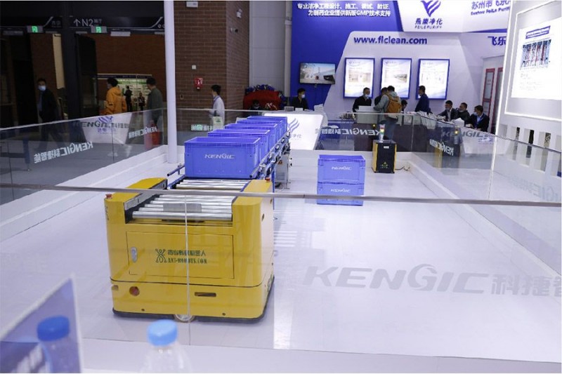 螞蟻機(jī)器人在此次展會(huì)現(xiàn)場(chǎng)進(jìn)行無(wú)人化自主搬運(yùn)的動(dòng)態(tài)演示:在調(diào)度系統(tǒng)的指揮下,螞蟻?zhàn)灾餮邪l(fā)的激光SLAM輥筒式料箱AGV自動(dòng)搬運(yùn)料箱與生產(chǎn)線對(duì)接,自動(dòng)配送過(guò)程中能夠高效精準(zhǔn)對(duì)接搬運(yùn)線體,同時(shí)演示現(xiàn)場(chǎng)設(shè)置障礙物,AGV能夠自動(dòng)識(shí)別障礙,避障繞行,完成貨物的實(shí)時(shí)運(yùn)輸。螞蟻機(jī)器人的高效對(duì)接和精準(zhǔn)避障滿足了醫(yī)藥行業(yè)在藥品種類多和環(huán)境復(fù)雜的背景下對(duì)安全頻繁轉(zhuǎn)運(yùn)的配送需求。