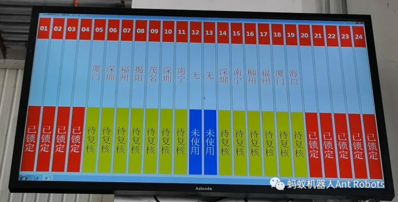 螞蟻AMR通過對接京東WMS系統,可在巷道顯示看板上實時提示流向、出貨量和拆零提示信息,實現作業信息公開化、透明化和流程化,螞蟻機器人完善的數據分析能力,可以實時監控作業流量,不斷改善全倉流程。