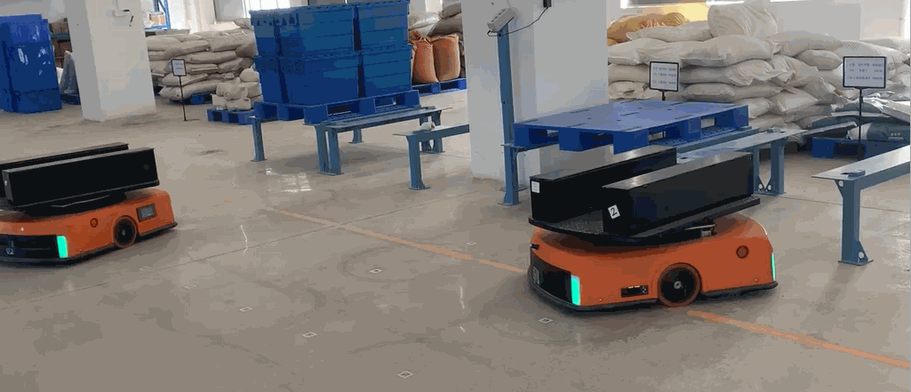 螞蟻AGV與梅花樁接駁臺對接的通道狹窄,左右兩邊僅5mm,對接精準(zhǔn),舉升平穩(wěn),實現(xiàn)高效搬運的同時,為客戶節(jié)省場地面積。
