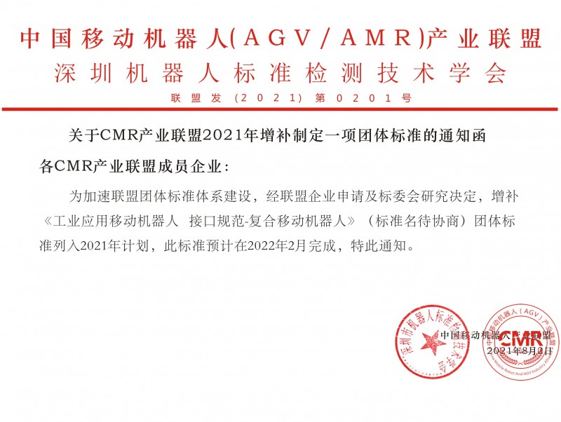 關于CMR產業聯盟2021年增補定制一項團體標準的通知函