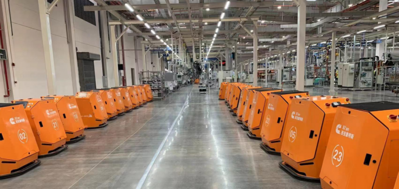 井源機電根據(jù)用戶對全線物料全自動存儲、配送的要求,規(guī)劃設計提供整體物流解決方案,自主開發(fā)設計AGV物流調度系統(tǒng),不僅與生產(chǎn)管理系統(tǒng)自動對接,同時調度230臺井源AGV,實現(xiàn)60多種物料的全自動存儲、配送。能滿足該工廠兼容A級到C級、從傳統(tǒng)燃油車到新能源汽車的多品種混線生產(chǎn),并預留擴能空間。