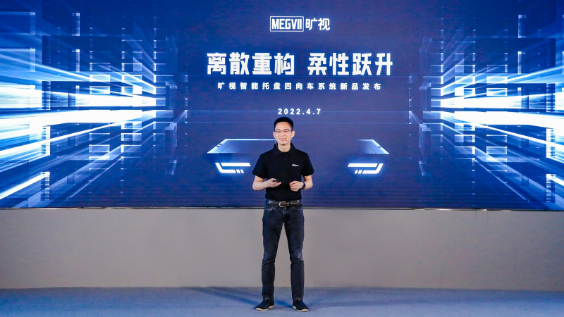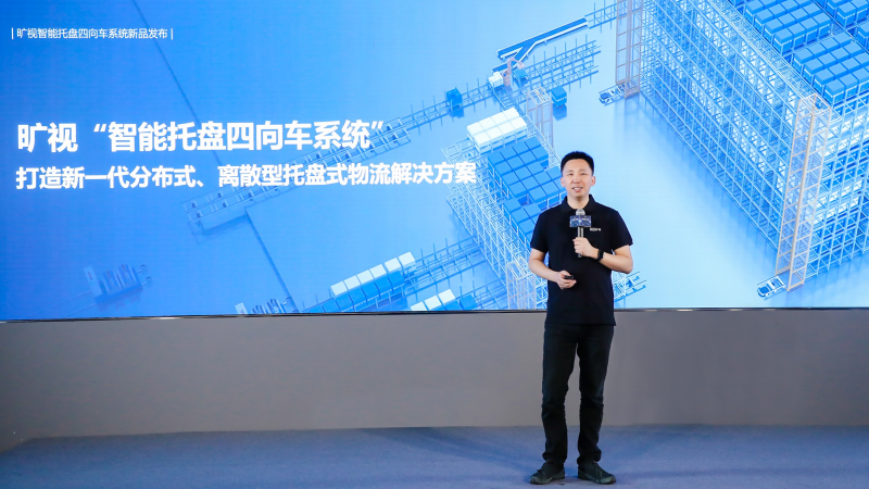 曠視聯(lián)合創(chuàng)始人、物流業(yè)務(wù)事業(yè)部產(chǎn)研負責人唐文斌發(fā)布曠視智能托盤四向車系統(tǒng)