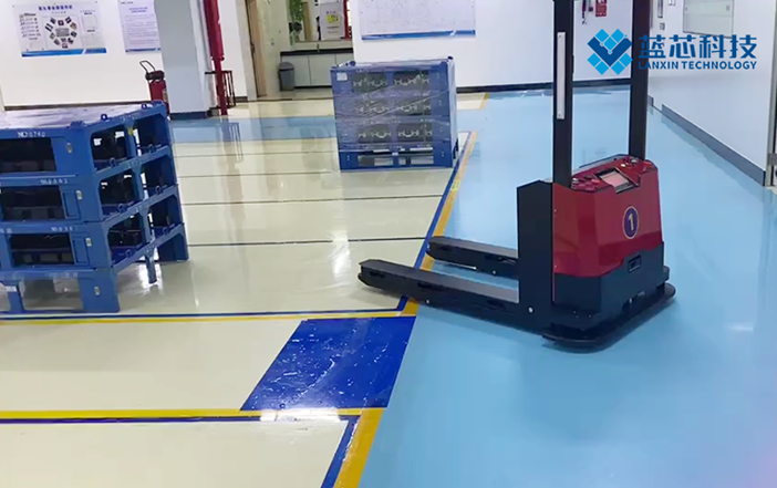 五、藍(lán)芯科技-某鋰電企業(yè)成品自動化轉(zhuǎn)運該企業(yè)是國內(nèi)知名的動力電池生產(chǎn)企業(yè)。在部署無人叉車前,成品的轉(zhuǎn)運工作由人工手拉地牛方式完成。車間→打包區(qū)→成品庫之間路線較長,動力電池重量大,搬運工作對工人來說既枯燥又繁重,且效率不高。企業(yè)希望由無人叉車替換人工,提升內(nèi)部物流效率。圖:藍(lán)芯科技無人叉車某鋰電企業(yè)車間應(yīng)用搭載藍(lán)芯LX-MRDVS(移動機(jī)器人深度視覺系統(tǒng)),涵蓋視覺定位導(dǎo)航/避障/對接技術(shù),環(huán)境變化不影響機(jī)器人穩(wěn)定運行。采用視覺定位導(dǎo)航方案:搬運的貨物為地堆型動力電池,地堆貨物進(jìn)出頻繁,激光導(dǎo)航方案不適用。——而藍(lán)芯科技的視覺SLAM無人叉車通過3D視覺定位相機(jī)(集成定位算法)采集豐富的三維圖像信息來完成定位導(dǎo)航,即使地堆貨物經(jīng)常變動也不影響機(jī)器人定位;采用視覺避障方案:通過搭載的3D視覺避障相機(jī)(集成避障算法)識別路徑上的工人、懸空障礙物和低矮障礙物,彌補(bǔ)激光雷達(dá)避障不足。采用無標(biāo)識視覺對接方案:通過搭載的3D視覺對接相機(jī)(集成對接算法)輔助叉齒智能定位托盤孔位,自動叉取托盤;打造了鋰電池行業(yè)首個叉車集群智能物流項目,以智能物流賦能鋰電制造,為鋰電生產(chǎn)提速。六、斯坦德-某鋰電企業(yè)加工車間工藝流程搬運項目使用無人車實現(xiàn)廠內(nèi)物料的自動搬運,涉及工藝流程包括合漿、涂布、輥分、模切、卷繞、電芯裝配、模組pack等全部鋰電池生產(chǎn)工藝段。場景包括原材料出入庫、極卷搬運、成品出入庫等。棧板尺寸:1x1.2m,1.1x1.4m等、重量:1000Kg面臨挑戰(zhàn):非增值重復(fù)性任務(wù)浪費時間;高靈敏度、高精確性組件擺;生產(chǎn)現(xiàn)場工藝流程多,人機(jī)交互復(fù)雜,人員更迭頻繁且能力參差不齊;極卷形狀特殊且比較重。