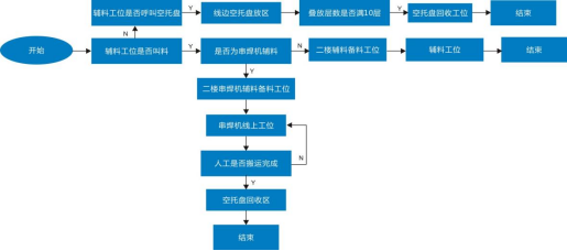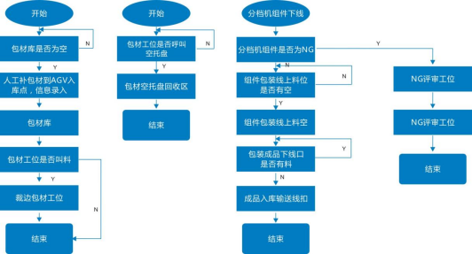 關節機器人主要運用在了電池片焊接、排版、裝邊框、注膠等環節,而移動機器人主要用于不同工序之間的工序對接。在光伏行業生產線上,從上游到下游需要用到多種不同類型的AGV。一般會用到叉車AGV對冶金級別的硅礦(若原料為太陽能級多晶硅材料,則采用潛伏頂升式AGV)等原材料進行運輸,將原料送上產線進行裝料,在高純度石英干過中按層次裝入塊料、粉料、顆粒料、摻雜劑然后放入石墨坩堝合爐,再進行抽空檢漏→壓力化→化料→引晶→縮頸→放肩→轉肩→等徑生長→收尾、停爐的步驟。電池生產工藝環節空間適中,標準化程度高,規模較大。在傳統生產模式中有大量的工藝對接及半成品上下料搬運對接由人工完成,在人員、流程管理、同步時效性上對用戶有一定困難及挑戰:①生產現場要求24小時連續作業,作業人員3班輪替,勞動強度大,導致人員流動性較大,企業管理成本劇增;②人工在生產設備前上料時,雙手只能同時操作單個電池片載具依次上料,效率低下;③生產工藝復雜,對物料上料時的擺放、朝向、整齊度都有嚴格要求,要求作業人員低容錯率和規范化作業,如在太陽能電池片生產過程中,有一道工序是將硅片插入花籃中,并將插滿硅片的花籃運輸至其它工藝設備處,以進行后續生產作業。為了將硅片準確地插入花籃中,一般通過工作人員人工操作,一片一片地將硅片插入花籃中。此外,將插滿硅片的花籃運輸至其它工藝設備處也是通過工作人員人工搬運實現的。由于硅片本身具有薄、脆等特點,因此,相關技術在將硅片插入花籃中時,容易因為工作人員力道不均而損壞硅片。④不同工藝環節之間由人工完成物料的搬運與上料,中間環節物料信息缺失,異常原因難以追溯。為了解決傳統人工模式存在的種種問題,光伏廠商開始在電池片生產車間引進AGV/AMR,實現從發料至下線,及生產中制絨、擴散、激光、刻蝕、退火氧化、鍍膜、背膜、正膜、絲網印刷等工藝的對接搬運,實現硅料、硅片安全高效的自動化轉運。當前,在電池片生產流程中,主要應用的AGV/AMR車型有兩種,分體式與一體式AGV,分體式AGV是直接頂升貨架,再與自動化設備或者主機臺工藝設備進行對接,一體式AGV則是上方會有傳輸帶(如輥道等)配件,可直接作為生產線傳輸帶的一部分。玻璃原片上料—EVA裁切鋪設—自動上模板—自動串焊—自動擺串—上背玻—EL測試單元—緩存堆棧—混進定位單元—層壓機—混出定位單元—自動修邊—翻轉檢查單元—自動裝框—上料機—固化—清洗--下料機—絕緣耐壓測試—IV測試單元—自動分檔—自動包裝—自動出入庫等。組件生產AGV自動小車自動按需運輸流程大致流程如下: