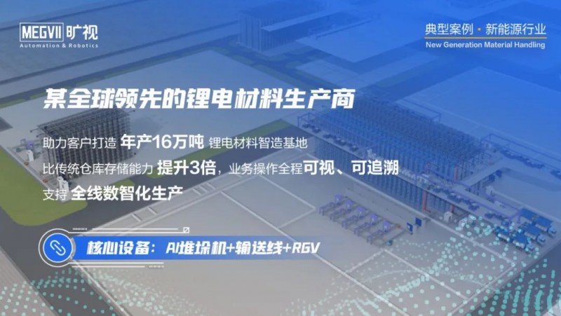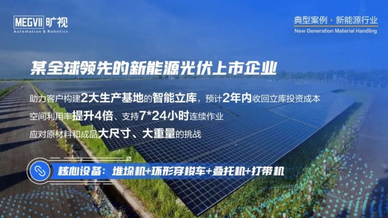 曠視看到,無論是鋰電原材料、動力電池還是光伏等新能源企業(yè)的生產(chǎn)設(shè)備的自動化改造已經(jīng)達到較高水平,企業(yè)通過工藝管理、工藝改進和精益制造實現(xiàn)了很好的效益提升;目前正在加緊部署物流機器人和智能立庫系統(tǒng),對物流環(huán)節(jié)數(shù)智化升級,以進一步提升工藝管理和交付能力,實現(xiàn)降本增效。
