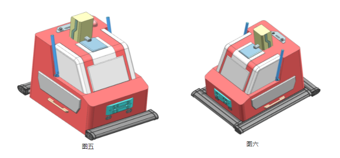 對(duì)于現(xiàn)有的四方形移動(dòng)部件(以AGV小車(chē)為例),一方面是將帶狀安全觸邊直接放置在前后兩側(cè)(見(jiàn)圖五),減免因撞擊帶來(lái)的傷害;更多地是利用多個(gè)帶狀安全觸邊組成一個(gè)閉環(huán)安全觸邊總成(見(jiàn)圖六)更好的減少傷害。