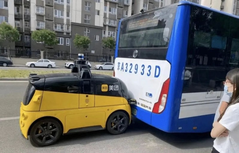 二是事故責任難定。早前美團的無人配送車發生的兩起交通事故,一次是在路口與一輛私家車相撞,一次是在機動車道與公交車追尾。事故中,美團無人配送車被認定為“無號牌”“無交強險”的“微型客車”,判罰全責。