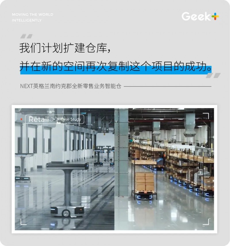 NEXT駐場經(jīng)理Liam Jenkinson表示:“與極智嘉的合作給我們帶來了非常積極的體驗,不論是從一開始還是后續(xù)持續(xù)的支持過程中。極智嘉的揀選和分揀系統(tǒng)提供的靈活性對我們的運營至關(guān)重要,而我們的倉庫管理系統(tǒng)與極智嘉的機器人管理系統(tǒng)之間的整合也非常順暢。隨著我們業(yè)務的不斷拓展,我們計劃擴建倉庫,并考慮在新的空間再次復制這個項目的成功。”