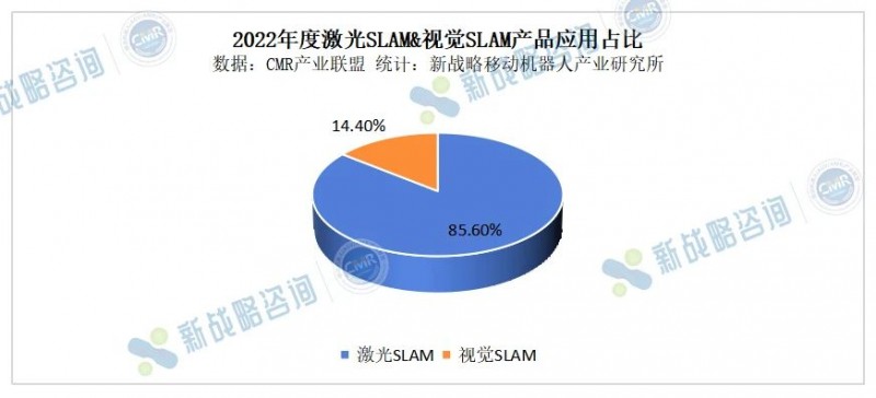 根據CMR產業聯盟數據,新戰略移動機器人產業研究所統計,2022年,落地的AMR中,激光SLAM產品占比為85.6%,視覺SLAM產品占比為14.4%。激光SLAM由于應用早,當前技術已經相對比較成熟,是應用主流,視覺SLAM由于起步稍晚,應用也相對滯后,但近兩年應用也在逐漸增多。