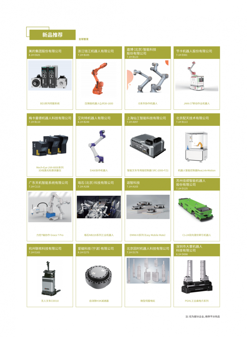 新品覆蓋了工業(yè)機器人本體、SCARA機器人、DELTA機器人、協(xié)作機器人、AGV/AMR、移動復合機器人、減速器控制器傳感器和伺服電機執(zhí)行器等核心零部件、軟件及系統(tǒng)集成應用等,彰顯最前沿的機器人技術(shù),為新型工業(yè)化注入新動能。