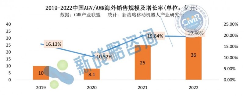 2019-2022中國(guó)AGV/AMR海外銷(xiāo)售規(guī)模及增長(zhǎng)率