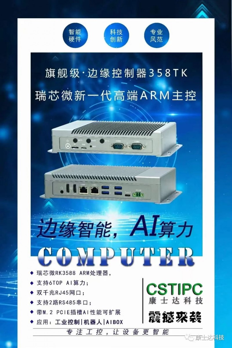另外,最火的RK3588新品,規(guī)格全,2網(wǎng)4串9USB;核心板+3.5寸底板方式,靈活搭配,項(xiàng)目好適配;性能強(qiáng),四核A75+四核A55的CPU,6Tops的NPU;康士達(dá)一貫的品質(zhì)保證,做工精良,是自動控制、AMR、視覺控制器最佳選擇。