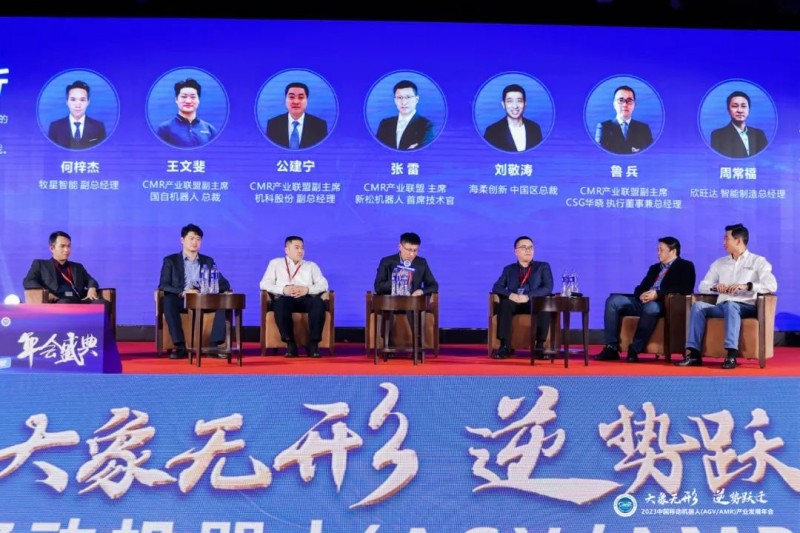 2023年12月13日,在“2023中國(guó)移動(dòng)機(jī)器人(AGV/AMR)產(chǎn)業(yè)發(fā)展年會(huì)-AMR新技術(shù)融合專(zhuān)場(chǎng)”的圓桌討論環(huán)節(jié),CMR產(chǎn)業(yè)聯(lián)盟主席、新松機(jī)器人首席技術(shù)官?gòu)埨祝珻MR產(chǎn)業(yè)聯(lián)盟副主席、國(guó)自機(jī)器人總裁王文斐,CMR產(chǎn)業(yè)聯(lián)盟副主席、機(jī)科股份副總經(jīng)理公建寧,CMR產(chǎn)業(yè)聯(lián)盟副主席、CSG華曉執(zhí)行董事兼總經(jīng)理魯兵,海柔創(chuàng)新中國(guó)區(qū)總裁劉敬濤,牧星智能標(biāo)品事業(yè)部總經(jīng)理何梓杰以及欣旺達(dá)智能制造總經(jīng)理周常福圍繞“制造、物流智能化升級(jí)過(guò)程中移動(dòng)機(jī)器人參與的廣度與深度、中國(guó)移動(dòng)機(jī)器人全球化進(jìn)程中的機(jī)會(huì)與挑戰(zhàn)、直面行業(yè)弊端,如何理性參與行業(yè)競(jìng)合”等本年度熱點(diǎn)話(huà)題,分享企業(yè)在新業(yè)態(tài)下的發(fā)展思路與成功經(jīng)驗(yàn)。