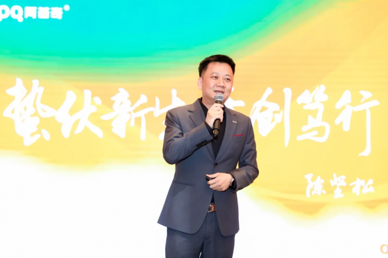 阿普奇董事長(zhǎng)陳堅(jiān)松先生發(fā)表主題為《蟄伏新生 奇創(chuàng)篤行——阿普奇2024年度分享》的演講。