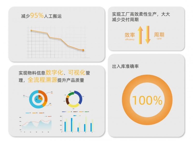 方案實現(xiàn)了對倉儲信息和產(chǎn)線訂單的全流程數(shù)字化管理,提高了信息的準確性和配送的及時性;物料信息全流程可追溯,大大提高了產(chǎn)品質(zhì)量管理效率。