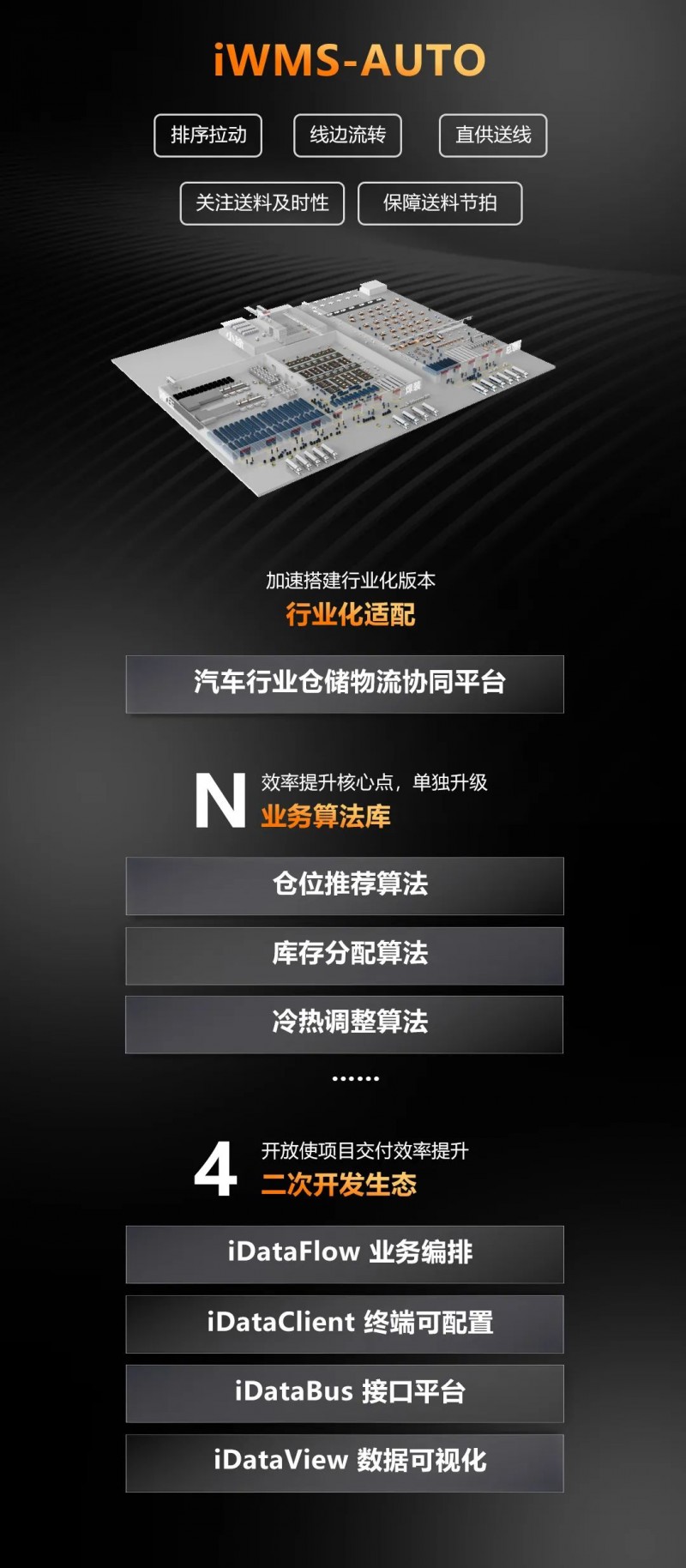 針對汽車行業特性打造的倉儲物流協同平臺,通過排序拉動、線邊流轉、直供送線等方式保障每個工位的送料節拍。