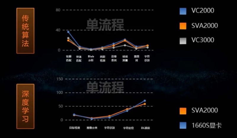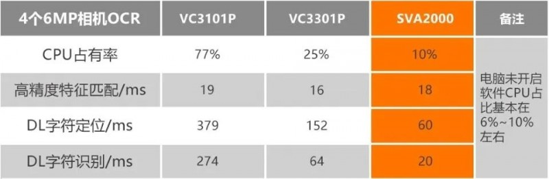 SVA2000利用硬件平臺(tái)的異構(gòu)特性對(duì)軟件架構(gòu)和算法效率進(jìn)行了深度優(yōu)化,在4相機(jī)應(yīng)用場(chǎng)景下,它的性能可以對(duì)齊桌面級(jí)CPU和GPU,能夠滿(mǎn)足大部分多相機(jī)視覺(jué)應(yīng)用的節(jié)拍要求。