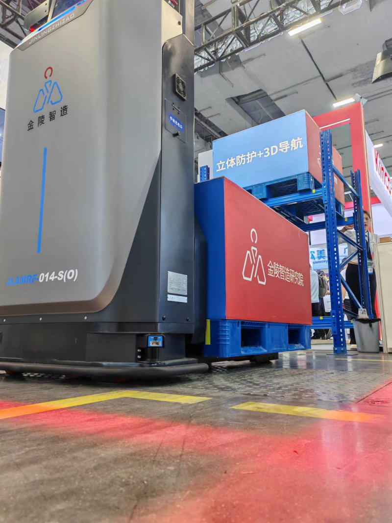 江蘇金陵智造研究院有限公司攜JLAMRF-014-S(O)全向窄巷道堆高型叉式AMR、WMS智慧倉庫管理系統(tǒng)、RCS智能機器人調(diào)度管理系統(tǒng)、重載差速驅(qū)動輪等產(chǎn)品亮相展會。其中,JLAMRF-014-S(O)叉式AMR是金陵智造研究院今年5月重磅推出的一款具備全向運動、托盤自適應(yīng)叉取、3D激光導(dǎo)航、立體避障的新型無人叉車。該產(chǎn)品集產(chǎn)線托盤物料上下線、線邊托盤物料儲存、托盤物料搬運、托盤物料存儲等多項應(yīng)用場景于一體,是托盤類物料存儲運輸?shù)亩嗝媸帧?/span>