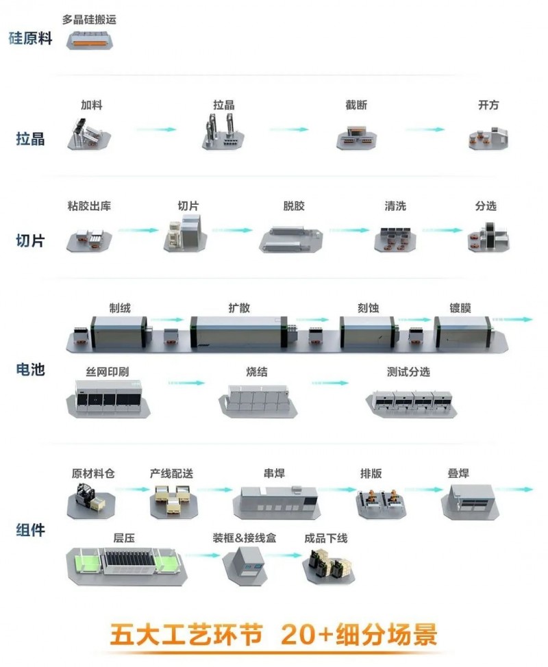 目前,海康機器人已打造覆蓋光伏五大工藝環節20+細分場景的方案,驅動光伏產能與品質雙升級。