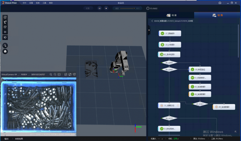 使用相機(jī)拍攝型材中部,RP輸出一組型材抓取點(diǎn)引導(dǎo)機(jī)械臂進(jìn)行抓取