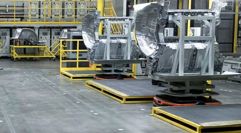 針對器具種類多,尺寸差異大的特點,海康機器人采用多款型號潛伏AMR相配合,打造了焊裝大件上線方案,適配各種尺寸器具,支持側圍等超長、異形載具搬運。