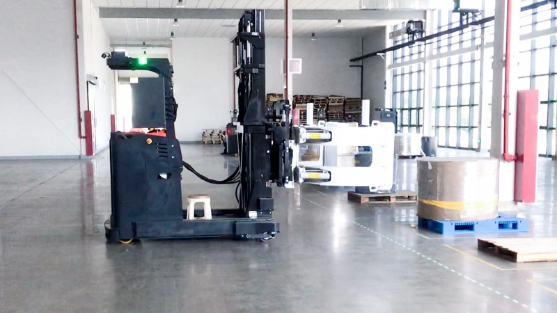 謝立:很多場景看似簡單,其實很復雜。去年未來機器人發布一款新產品VNST20無人叉車,這款產品是針對平面搬運場景的全新新品,尤其適用于窄通道、地堆庫密集存儲場景,這款車是我們首次嘗試僅用一顆激光,實現感知、定位、立體防護為一體,車型小巧、輕便、易導入。對客戶來說,性價比高,導入快,項目施工周期短,而且非常易上手使用。目前我們在印刷、快消等行業內實現多個項目落地,客戶普遍反饋不錯,新車的性能穩定,運行效率高。