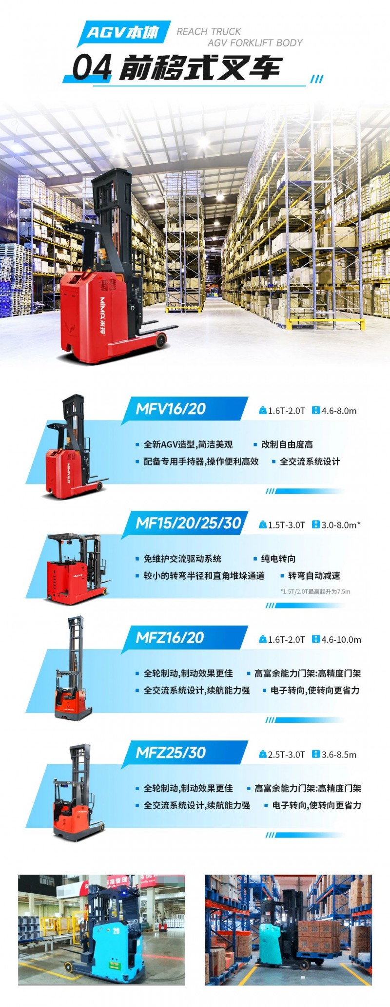 合肥搬易通MiMA米瑪|全系列專業(yè)AGV叉車本體產(chǎn)品矩陣