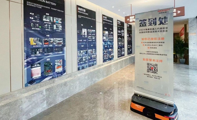 昆明站創(chuàng)新性地將機器視覺與AMR相結合,AMR載著機器視覺的易拉寶現(xiàn)場穿梭,為與會者傳遞活動信息,吸引了許多關注。