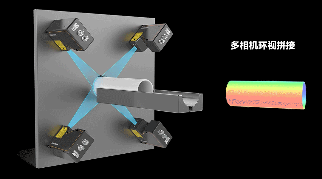 基于上述挑戰,海康機器人推出3D激光輪廓傳感器360°環視檢測方案,通過四相機環視拼接,將多相機掃描到的被測物點云數據統一到同一個系統坐標系下,形成柱狀物體外立面完整的點云數據。
