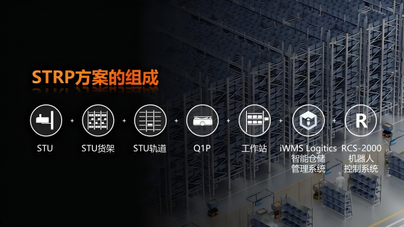 STRP方案核心的由STU+高位貨架+緩存位+Q1P+工作站構(gòu)成,同時(shí)搭配iWMS-Logistics 智能倉儲管理系統(tǒng)以及 RCS-2000 機(jī)器人控制系統(tǒng)。