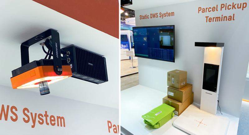 該區(qū)域展示了海康機器人靜態(tài)DWS方案:在物流信息收集過程中無需人工干預,可以自動收集基礎數據,適用于多種類型(如黑色、高反光、薄片、異形件等)包裹的體積測量。