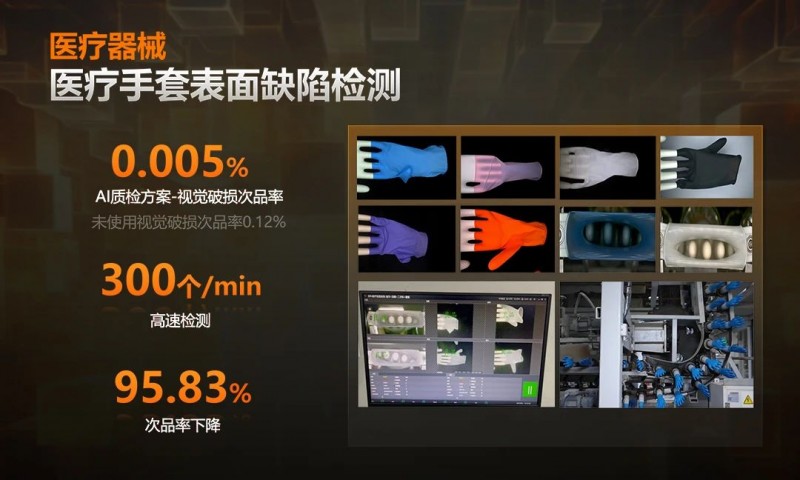 在器械領域醫用手套表面缺陷檢測的項目實踐中,??禉C器人通過CCD面陣相機、AI深度學習等技術,實現了綜合缺陷漏檢率小于十萬分之五的高精度檢測,大幅提高了產線良率、效率,降低客訴率。