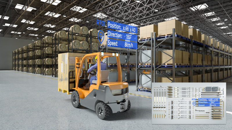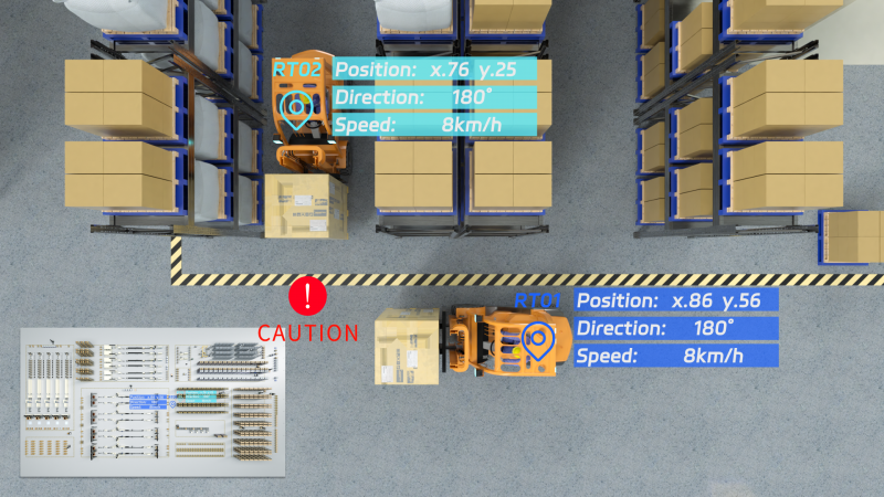 系統不僅提供實時定位支持,還具備車輛速度檢測功能。通過分析叉車的行駛速度和當前位置,系統能夠在危險區域內對超速行為進行實時提醒,同時提示駕駛員周圍的車輛及潛在危險,有效提升操作安全性并降低事故風險。此外,系統設置了自動化禁行區域(no-go zones),提醒駕駛員避開高風險區域,進一步減少了叉車碰撞事故的發生概率。