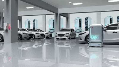 車主可通過手機端充電APP一鍵下單,為汽車充電,系統接到充電任務1秒級響應并指派充電機器人前往泊車位。