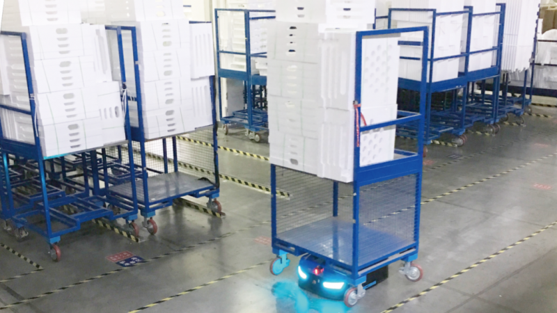 某物流機(jī)器人企業(yè),在一高端智能物流戰(zhàn)略項(xiàng)目中,牧星為其定制了與該項(xiàng)目匹配的包材存儲與供料上線SLAM車型,大大節(jié)省了人力成本。
