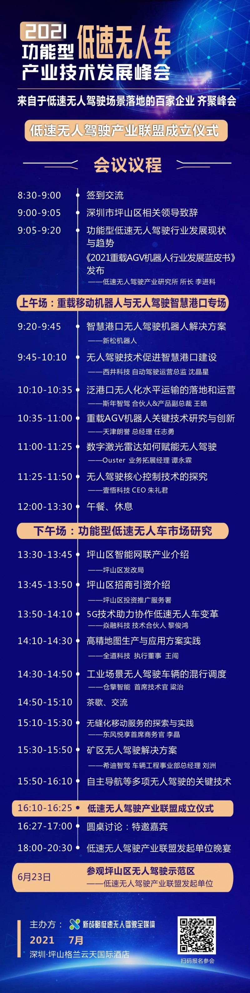 經過前期籌備,原定于6月22日舉辦的“2021功能型低速無人車產業技術發展峰會”報名人數已達300余人次,涵蓋產業鏈上下游各類企業。