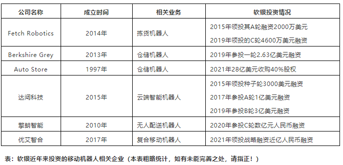 除了上述三家國外企業(yè)外,中國市場,軟銀也先后投資了達闥科技、擎朗智能以及優(yōu)艾智合三家移動機器人企業(yè)。