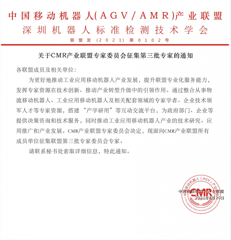 關(guān)于CMR產(chǎn)業(yè)聯(lián)盟專家委員會征集第三批專家的通知