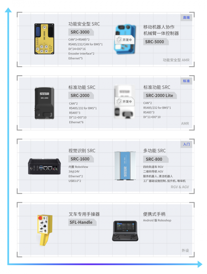 但仙工智能不限如此,現(xiàn)有的控制器產(chǎn)品線已趨于完善,既有標準功能型的控制器,也有功能安全型的控制器,既有高階的控制器,也有入門級的控制器。