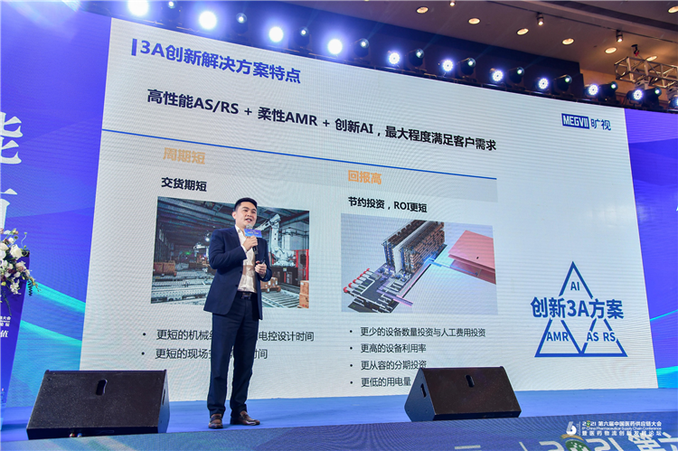 “通過集合高性能AS/RS+柔性AMR+創新AI,曠視3A智慧物流解決方案具備周期短和回報高的特點”,曠視科技物流業務銷售副總裁程昌順介紹到,“該方案通過更短的機械組裝、電控設計時間和現場安裝調試時間,可縮短交付周期;通過更少的設備和人工投資、更高的設備利用率、更低的用電量、更從容的分布投資等,提高醫藥物流的ROI(投資回報率)。”