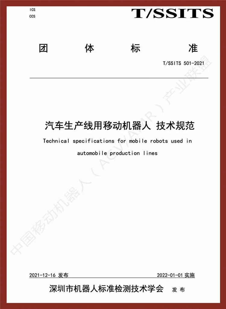 蘇州羅伯特木牛流馬物流技術有限公司作為移動機器人行業(yè)領先企業(yè)參與了《汽車生產線用移動機器人技術規(guī)范》相關團體標準的編寫工作。標準規(guī)定了汽車生產線用移動機器人的分類、系統(tǒng)組成、性能要求、技術要求、環(huán)境與應用安全、試驗方法、檢驗規(guī)則及標志、包裝、運輸和貯存。適用于在汽車生產線的沖壓、焊接、涂裝、總裝及廠內物流等領域應用的移動機器人及系統(tǒng)的技術要求、安全要求及試驗方法。