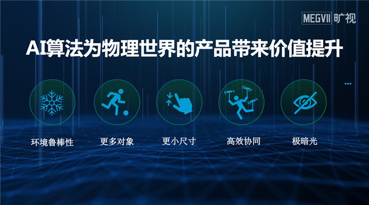 AI算法能讓設(shè)備和系統(tǒng)更加智能。有AI算法加持的自主移動機(jī)器人(AMR),可“腦補(bǔ)”缺失信息,做到不迷路,具有更強(qiáng)環(huán)境魯棒性。AI讓設(shè)備能處理更多對象,如曠視商品信息視覺識別系統(tǒng),能同時識別紙箱上的文字、圖形、尺寸、形狀等眾多信息,甚至判斷好壞。在AI優(yōu)化調(diào)度下,不同類型智能設(shè)備可實(shí)現(xiàn)高效協(xié)同。AI還能讓產(chǎn)品做到更小尺寸,應(yīng)對極暗光等挑戰(zhàn)。