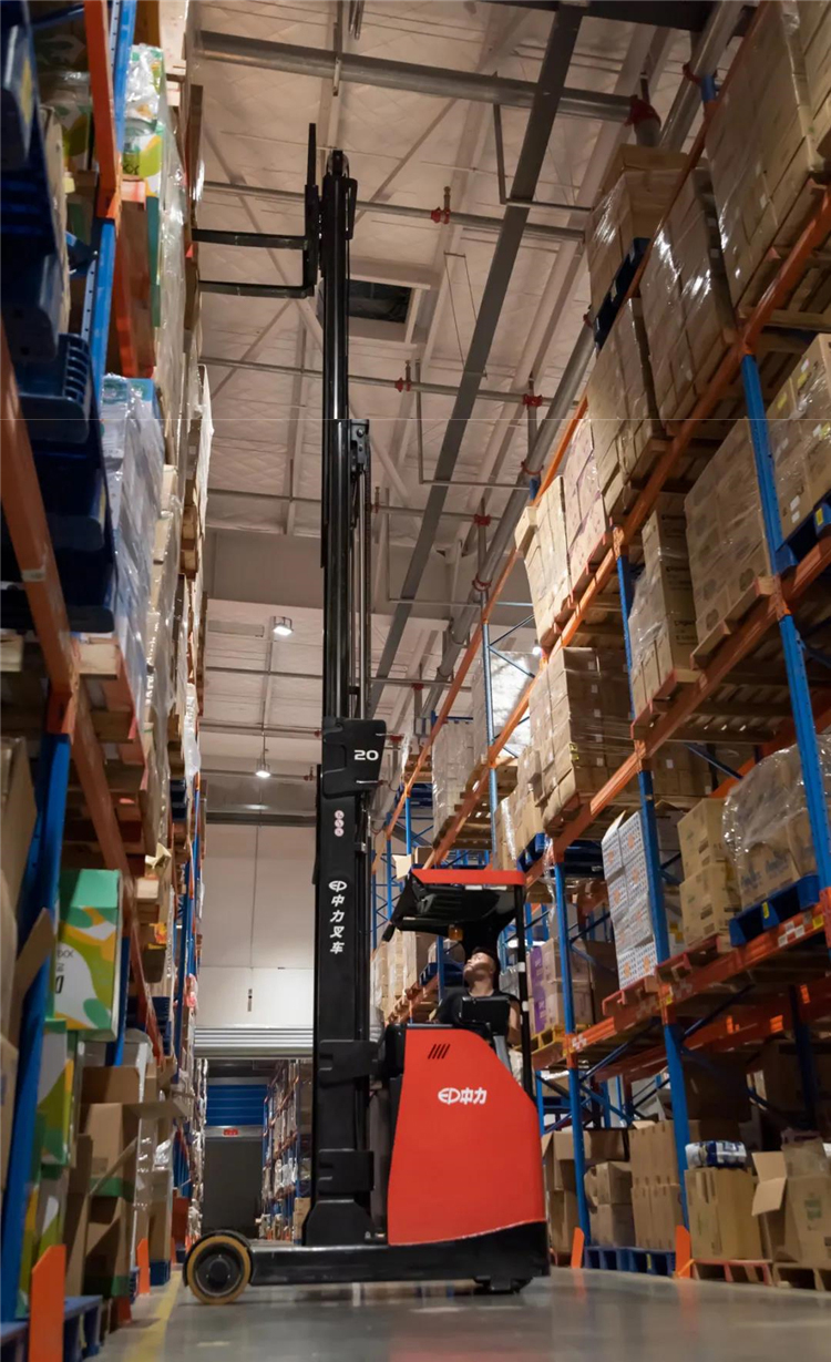 帶抱夾的電動平衡重叉車,用于移動家用電器等較大不宜顛簸的包裹;前移式叉車在8米以上高架的倉庫中垂直堆垛;叉車用于裝卸貨車,快速轉(zhuǎn)運;電動托盤車在倉庫中轉(zhuǎn)移包裹;電動堆高車在終端營業(yè)部門裝卸貨物等等,中力龐大車隊全面協(xié)作、全力打造京東物流園區(qū)高效的物流搬運體系。