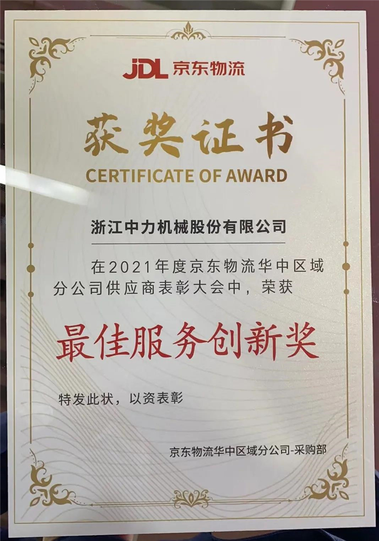 中力榮獲2021年度“最佳服務(wù)創(chuàng)新獎”榮譽稱號,肯定了中力在為客戶提升產(chǎn)業(yè)效率方面作出的杰出貢獻。