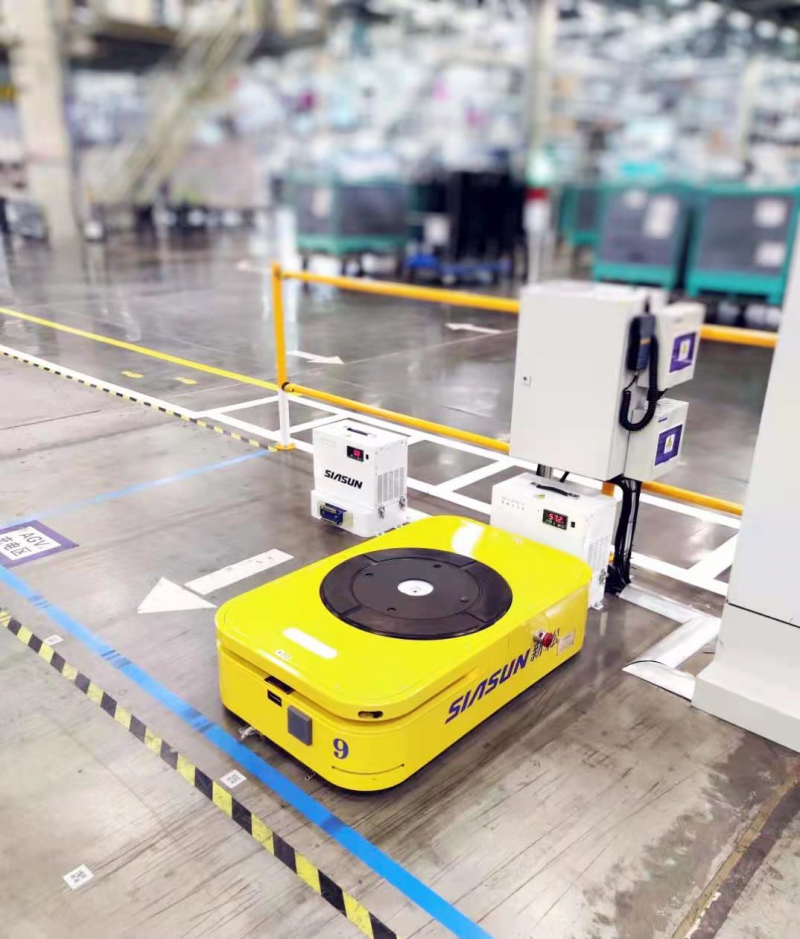 2019年新松機(jī)器人為國內(nèi)某知名車企在總裝車間的儀表線、電池線、門段揀選線等產(chǎn)線提供數(shù)十臺物流配送AGV。項目在實施過程中,原定選用的是激光SLAM導(dǎo)航,由于部分生產(chǎn)線邊特征點不明顯,環(huán)境特征變化太多,導(dǎo)致SLAM導(dǎo)航精度不高,定位不準(zhǔn),影響了使用效率。經(jīng)過分析后,新松輔以紋理導(dǎo)航解決了因局部區(qū)域特征變化較大而產(chǎn)生的問題。在特殊路段,通過對現(xiàn)場地面紋理的拍攝,與AGV本體已有紋理模型構(gòu)圖進(jìn)行比對,從而確定精確位置,提高了現(xiàn)場的導(dǎo)航精度和定位精度,滿足了客戶的使用效率要求。