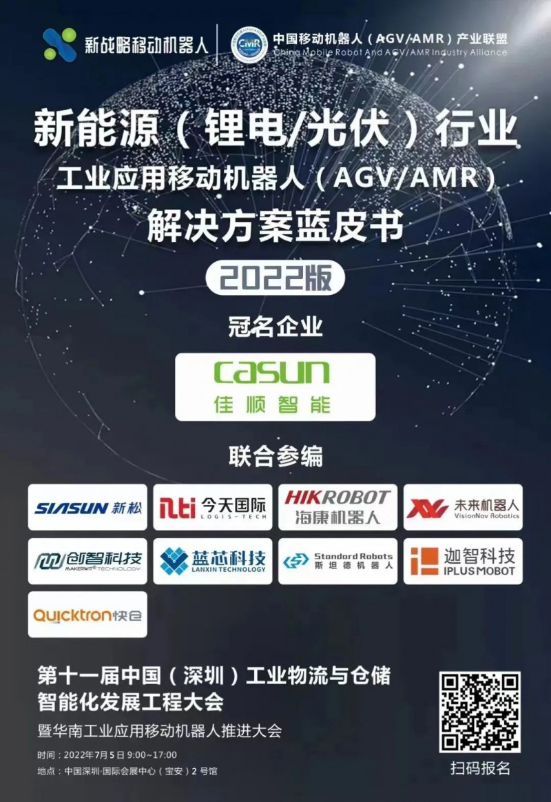 當前,新能源領(lǐng)域,氫能產(chǎn)業(yè)發(fā)展還處于早期,但鋰電及光伏產(chǎn)業(yè)已經(jīng)相對成熟,生產(chǎn)環(huán)節(jié)的自動化程度也在不斷提高,移動機器人作為自動化搬運設(shè)備,也陸續(xù)在鋰電及光伏行業(yè)落地應(yīng)用。2022年7月5日,中國移動機器人(AGV/AMR)產(chǎn)業(yè)聯(lián)盟將發(fā)布 《新能源行業(yè)用移動機器人(AGV/AMR)解決方案藍皮書(2022版)》,敬請期待!